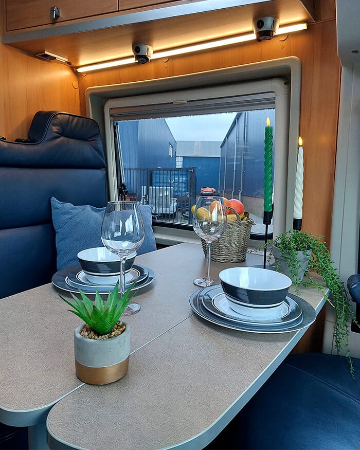 De tweepersoons Hymer camper is goed uitgerust met alles wat je nodig hebt voor een geslaagd avontuur! Bekijk hieronder wat er inbegrepen is bij de huur van de camper bij Camp Adventure.
