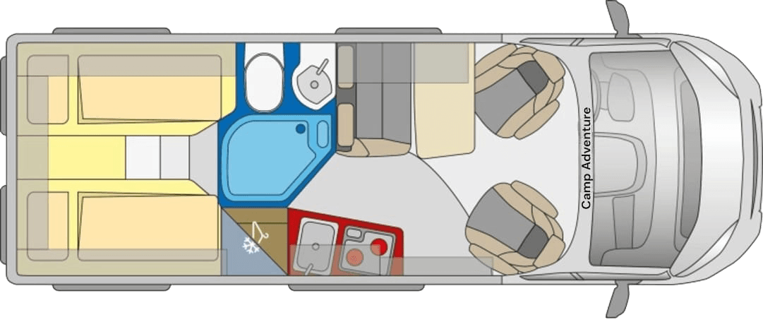 De vierpersoons Sun Living is goed uitgerust met alles wat je nodig hebt voor een geslaagd avontuur! Bekijk hieronder wat er inbegrepen is bij de huur van de camper bij Camp Adventure.